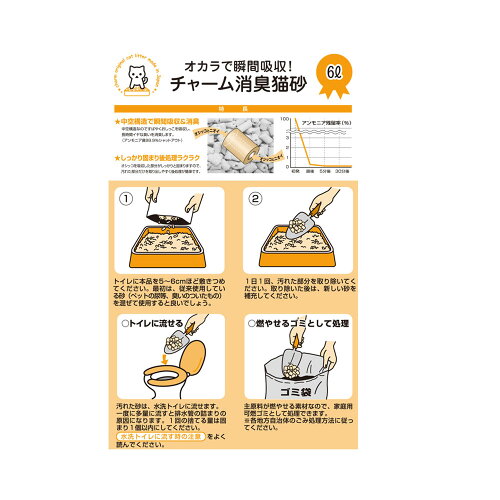 生産国日本主原料乾燥オカラ、澱粉使用方法 1.トイレに本品を5〜6cmほど敷きつめてください。
