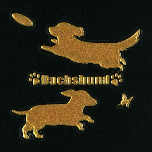 犬 蒔絵シール 【Love dog ミニチュアダックスフンド(フリスビーと蝶々)金 30mm】犬 雑貨 ダックスフンド ステッカーケータイ スマホ iPhone デコ ステッカー iQOS アイコス