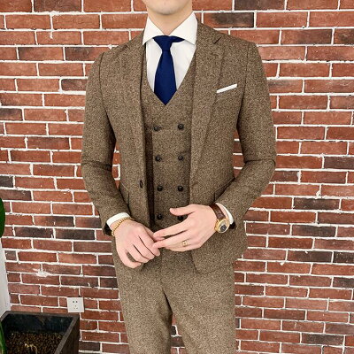 【送料無料】メンズスーツ 3ピーススーツ 上品 高級感 3点セット 長袖ジャケット+パンツ+ベスト 一つボタン 礼服 紳士服 スーツ 細身 結婚式 花婿 撮影 セットアップ おしゃれスーツ セレモニー ビジネス カジュアル フォーマル パーティー 通勤 就職 宴会 二次会 披露宴