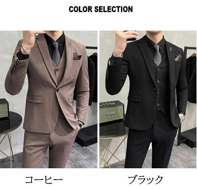 【送料無料】 メンズスーツ 3点セット 長袖ジャケット+パンツ+ベスト 3ピーススーツ スリム 着瘦 高級感 一つボタン 細身 韓国風 礼服 紳士服 結婚式 花婿 撮影 おしゃれスーツ セレモニー ビジネス カジュアル フォーマル パーティー 通勤 宴会 二次会 披露宴 司会 舞台