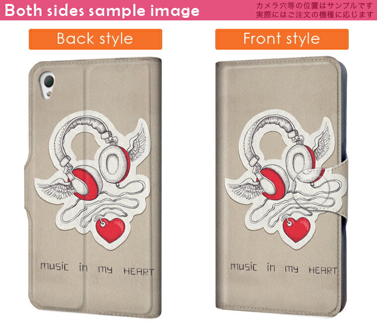 501SO Xperia Z5 エクスペリア softbank ソフトバンク スマホ カバー 手帳型 カバー レザー ケース 手帳タイプ フリップ ダイアリー 二つ折り 革 イラスト ハート ヘッドフォン ラブリー 005697