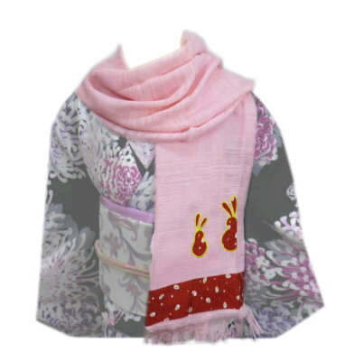 コットン マフラー 和柄 パッチワーク ピンク地うさぎ 着物 きもの 洋装 女性用 レディース ウサギ 兎