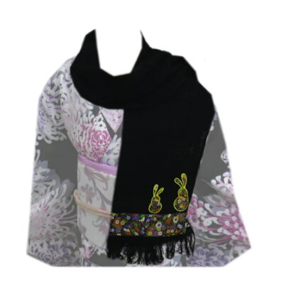 コットン マフラー 和柄 パッチワーク 黒地紺うさぎ 着物 きもの 洋装 女性用 レディース ウサギ 兎