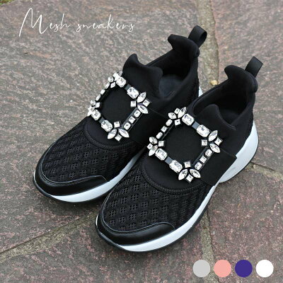 《楽天ランキング1位 送料無料》ビジュー メッシュ スニーカー 楽ちん 疲れにくい レディース 22 23 24 25 白 ブラック ホワイト おしゃれ かわいい 靴 痛くない スポーツ 厚底スニーカー 厚底 ダッドスニーカー 韓国ファッション シューズ 軽い 大人女子 黒 楽 cm 女性